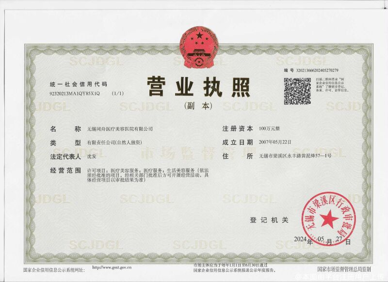 企业名称:无锡同舟医疗美容医院