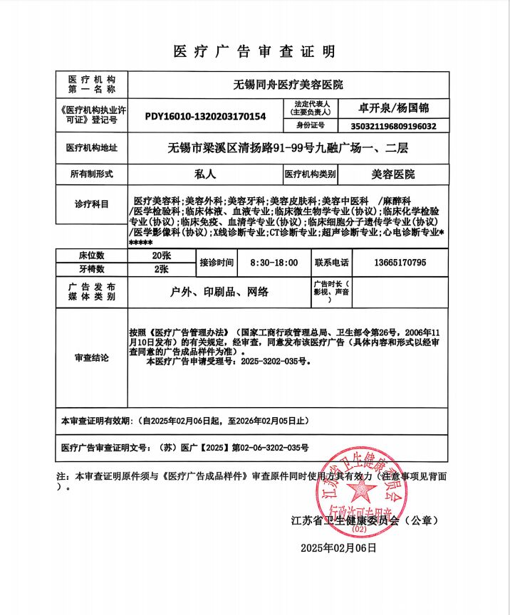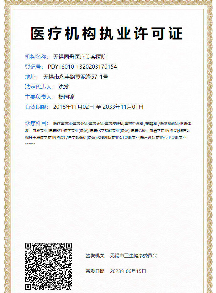 机构名称:无锡同舟医疗美容医院