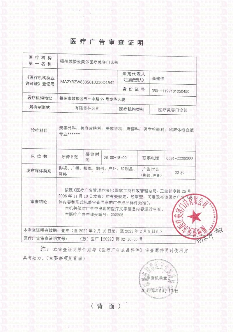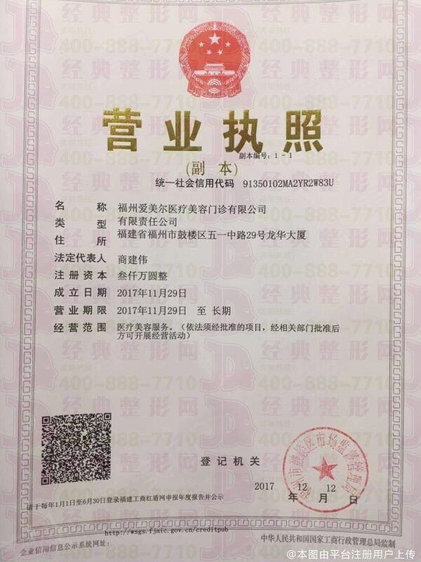企业名称:福州爱美尔医疗美容门诊部