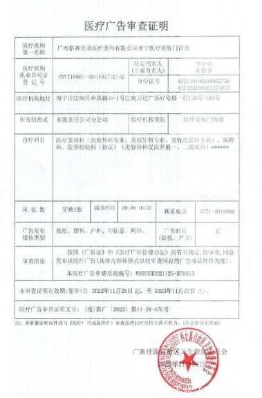 机构名称:南宁格林美菲医疗美容门诊部