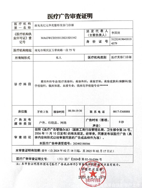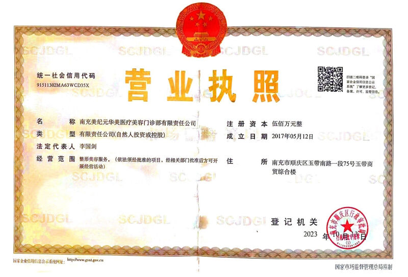 企业名称:南充美纪元华美医疗美容门诊部