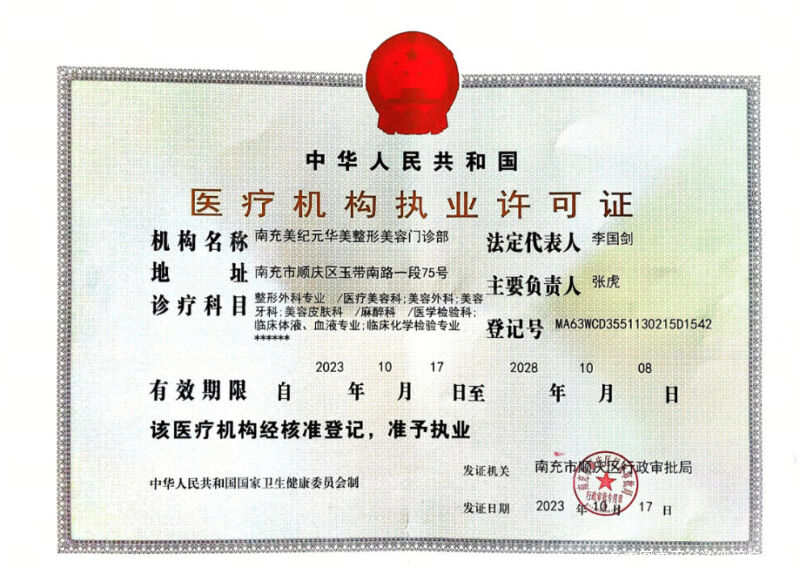 机构名称:南充美纪元华美医疗美容门诊部