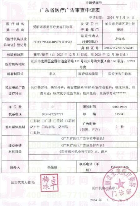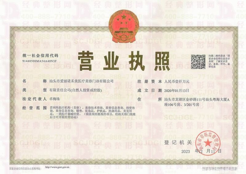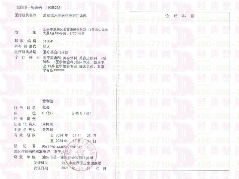 企业名称:汕头爱丽诺禾美医疗美容门诊部(原曙光)