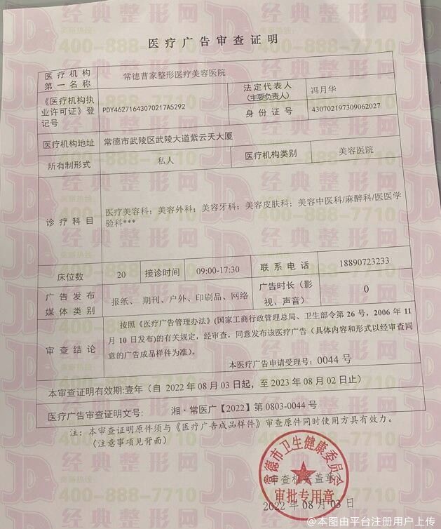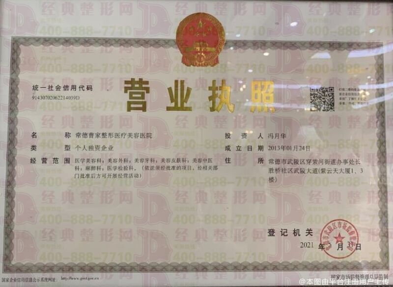机构名称:常德曹家整形医疗美容医院