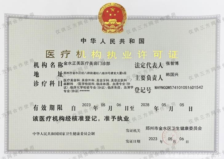 机构名称:郑州正美医疗美容门诊部