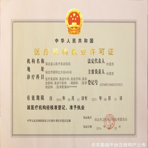 企业名称:保定蓝山医疗美容医院