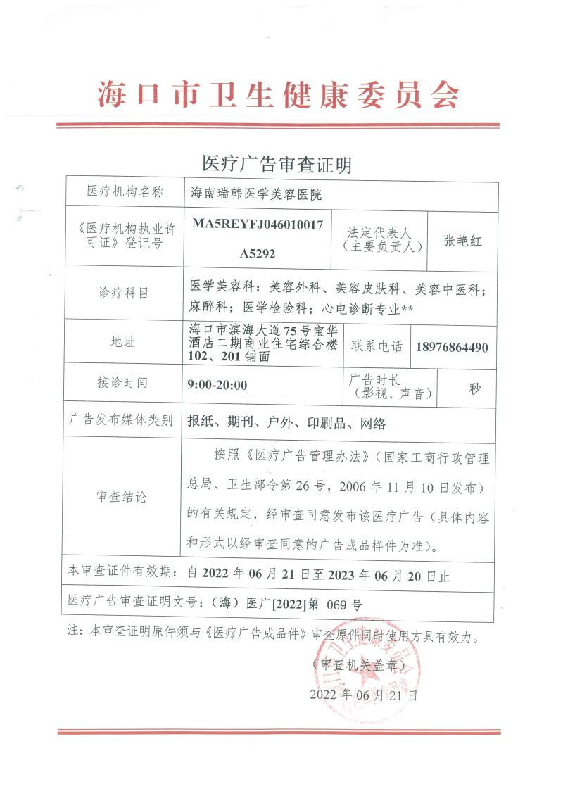 企业名称:海南瑞韩医学美容医院